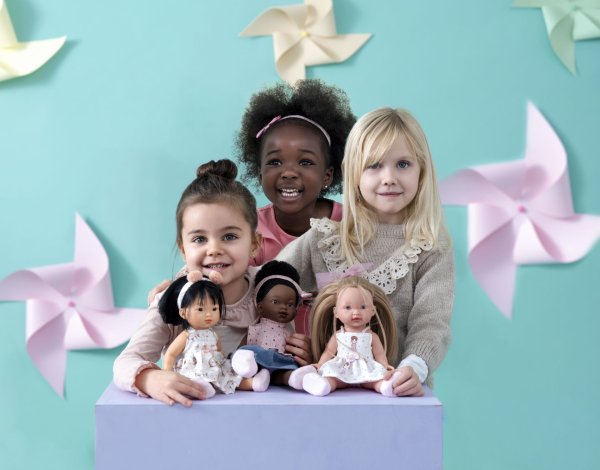Panenka bez zvuku s vinylovým tělem a vlásky po celé hlavě. Ruce a nohy jsou k tělu přichyceny kloubem. Panenka je polohovací a může i sedět. Velikost panenky 28 cm. Ručně vyrobeno ve Španělsku, baleno v dárkové krabici. Doporučený věk od 3 let.