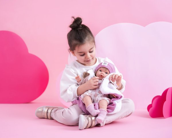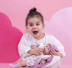 Mluvící a plačící panenka (po vyjmutí pojistky ihned funkční) s měkkým látkovým tělem a s vlásky po celé hlavě. Hlava a končetiny jsou vyrobené z kvalitního měkčeného vinylu. Po vytažení dudlíku z úst začne panenka říkat „mama“, „papa“ a vydávat reálný zvuk plačícího dítěte, který lze utišit opět magnetickým dudlíkem. Velikost panenky 38 cm. Ručně vyrobeno ve Španělsku, baleno v dárkové krabici. Doporučený věk od 3 let. K panence je možné dokoupit další originální oblečení z nabídky Llorens pro panenky velikosti 38 cm. Součástí balení je 3 x knoflíková baterie LR44 s návodem na její výměnu. Baterie jsou spotřební zboží a proto jejich vybití není důvodem k reklamaci panenky.