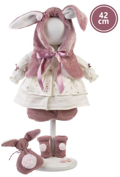 Mluvící a plačící panenka (po vyjmutí pojistky ihned funkční) s měkkým látkovým tělem a s vlásky po celé hlavě. Hlava a končetiny jsou vyrobené z kvalitního měkčeného vinylu. Po vytažení dudlíku z úst začne panenka říkat „mama“, „papa“ a vydávat reálný zvuk plačícího dítěte, který lze utišit opět magnetickým dudlíkem. Velikost panenky 42 cm. Ručně vyrobeno ve Španělsku, baleno v igelitovém obalu. Doporučený věk od 3 let. Tento model je bez oblečení a proto doporučujeme k panence dokoupit originální oblečení z nabídky Llorens pro panenky velikosti 42 cm. Součástí balení je 3 x knoflíková baterie LR44 s návodem na její výměnu. Baterie jsou spotřební zboží a proto jejich vybití není důvodem k reklamaci panenky.
