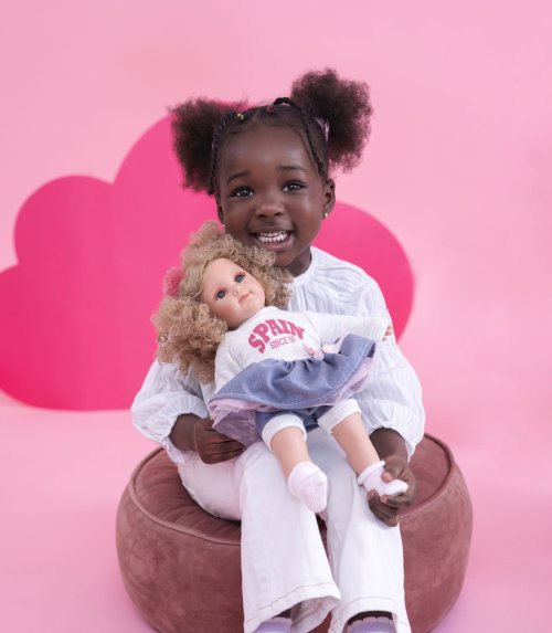 Panenka bez zvuku s měkkým látkovým tělem a s vlásky po celé hlavě, podobající se malé slečně.