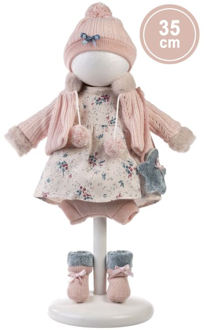 Panenka bez zvuku s měkkým látkovým tělem a s vlásky po celé hlavě, podobající se malé slečně. Velikost 35 cm. Ručně vyrobeno ve Španělsku, baleno v igelitovém obalu. Doporučený věk od 3 let. Tento model je bez oblečení a proto doporučujeme k panence dokoupit originální oblečení z nabídky Llorens pro panenky velikosti 35 cm.