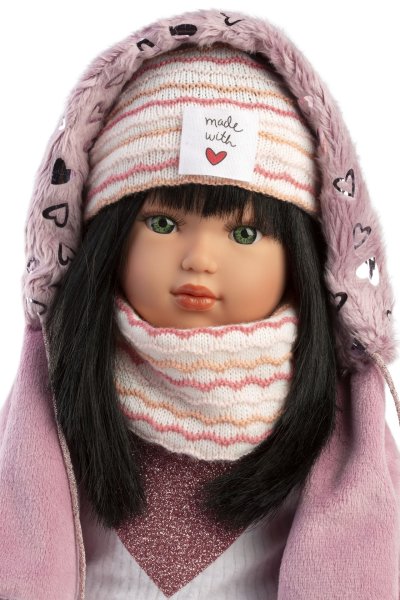 Panenka bez zvuku s měkkým látkovým tělem a s vlásky po celé hlavě, podobající se malé slečně. Velikost 40 cm. Ručně vyrobeno ve Španělsku, baleno v dárkové krabici. Doporučený věk od 3 let. K panence je možné dokoupit další originální oblečení z nabídky Llorens pro panenky velikosti 40 cm.