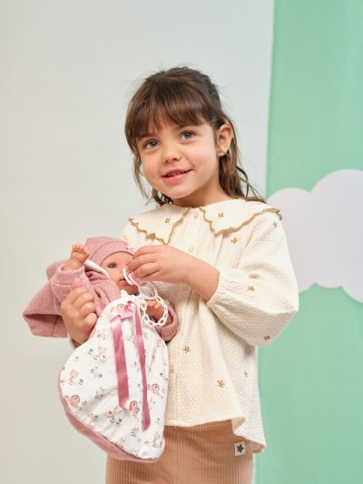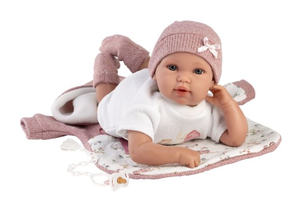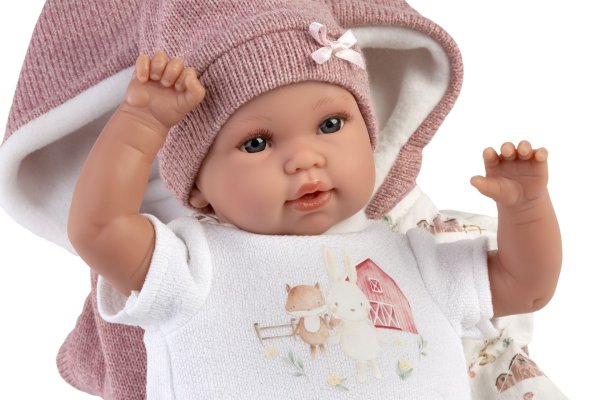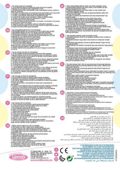 Mluvící miminko s měkkým látkovým tělem, které po zatlačení na hrudník začne říkat „mama“, „papa“ a vydávat reálný zvuk plačícího miminka. Ruce a nohy jsou k tělu přichyceny kloubem. Miminko je polohovací a může i sedět. Dudlík v balení slouží pouze jako doplněk. Velikost 36 cm. Ručně vyrobeno ve Španělsku, baleno v dárkové krabici. Doporučený věk od 3 let. K miminku je možné dokoupit další originální oblečení z nabídky Llorens pro miminka NEW BORN velikosti 35-36 cm. Součástí balení je 3 x knoflíková baterie LR44 s návodem na její výměnu. Baterie jsou spotřební zboží a proto jejich vybití není důvodem k reklamaci panenky.