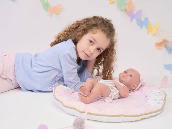Miminko bez zvuku s vinylovým tělem s možností koupání, na kterém je zachycen doslova každý detail dětského tělíčka včetně roztomilých miminkovských faldíků a pohlaví. Miminko lze koupat, ale je potřeba dát pozor, aby se nenamočily řasy. Odlepené řasy nejsou pak důvodem k reklamaci. Ruce a nohy jsou k tělu přichycené kloubem. Miminko je polohovací a může i sedět. Velikost 40 cm. Ručně vyrobeno ve Španělsku, baleno v dárkové krabici. Doporučený věk od 3 let. K miminku je možné dokoupit další originální oblečení z nabídky Llorens pro miminka NEW BORN velikosti 40-42 cm.