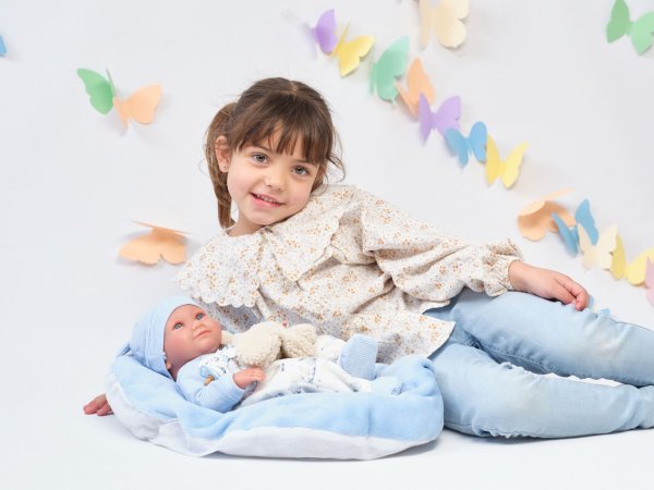 Miminko bez zvuku s vinylovým tělem s možností koupání, na kterém je zachycen doslova každý detail dětského tělíčka včetně roztomilých miminkovských faldíků a pohlaví.