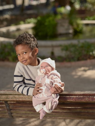 Mluvící miminko s měkkým látkovým tělem, které po zatlačení na hrudník začne říkat „mama“, „papa“ a vydávat reálný zvuk plačícího miminka. Ruce a nohy jsou k tělu přichyceny kloubem. Miminko je polohovací a může i sedět. Dudlík v balení slouží pouze jako doplněk. Velikost 42 cm. Ručně vyrobeno ve Španělsku, baleno v dárkové krabici. Doporučený věk od 3 let. K miminku je možné dokoupit další originální oblečení z nabídky Llorens pro miminka NEW BORN velikosti 40-42 cm nebo 43-45 cm. Součástí balení je 3 x knoflíková baterie LR44 s návodem na její výměnu. Baterie jsou spotřební zboží a proto jejich vybití není důvodem k reklamaci panenky.