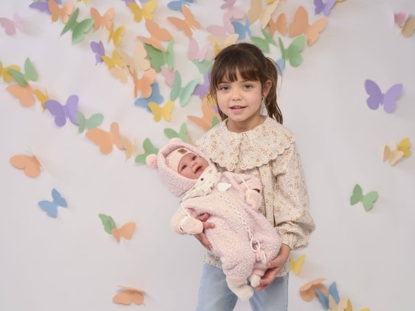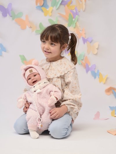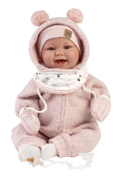 Mluvící miminko s měkkým látkovým tělem, které se po zatlačení na hrudník začne smát a říkat „mama“, „papa“. Ruce a nohy jsou k tělu přichyceny kloubem. Miminko je polohovací a může i sedět. Dudlík v balení slouží pouze jako doplněk. Velikost 44 cm. Ručně vyrobeno ve Španělsku, baleno v dárkové krabici. Doporučený věk od 3 let. K miminku je možné dokoupit další originální oblečení z nabídky Llorens pro miminka NEW BORN velikosti 43-45 cm. Součástí balení je 3 x knoflíková baterie LR44 s návodem na její výměnu. Baterie jsou spotřební zboží a proto jejich vybití není důvodem k reklamaci panenky.