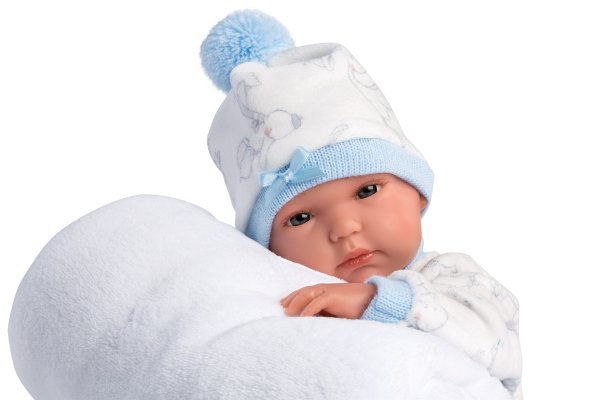 3dílný obleček s dečkou a muchlacím kapesníčkem s bambulkou pro panenku miminko NEW BORN Llorens velikosti 35-36 cm. Vyrobeno ve Španělsku, baleno v igelitovém obalu s plastovým nebo kartonovým ramínkem.. Doporučený věk od 3 let.