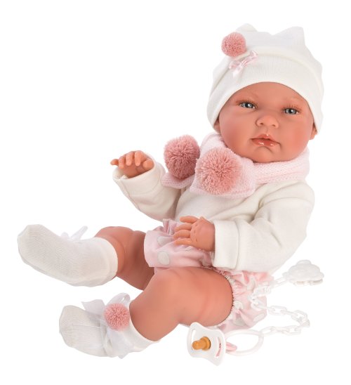 5dílný obleček s rychlozavinovací dekou s kapucí pro panenku miminko NEW BORN Llorens velikosti 40-42 cm. Vyrobeno ručně ve Španělsku, baleno v igelitovém obalu s plastovým ramínkem. Doporučený věk od 3 let.