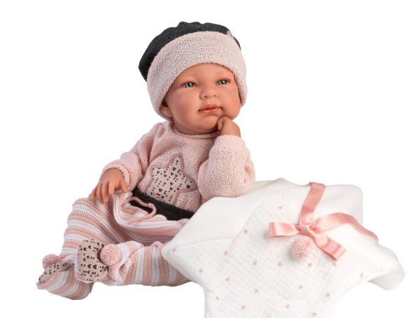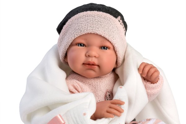 3dílný obleček s ozdobnou dečkou pro panenku miminko NEW BORN Llorens velikosti 43-44 cm. Vyrobeno ve Španělsku, baleno v igelitovém obalu s plastovým nebo kartonovým ramínkem. Doporučený věk od 3 let.