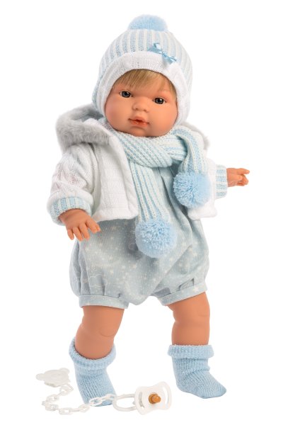 5dílný obleček pro panenku Llorens velikosti 38 cm. Vyrobeno ve Španělsku, baleno v igelitovém obalu s plastovým nebo kartonovým ramínkem. Doporučený věk od 3 let.