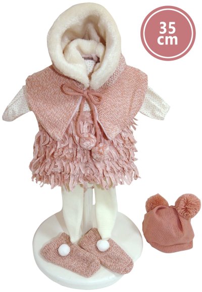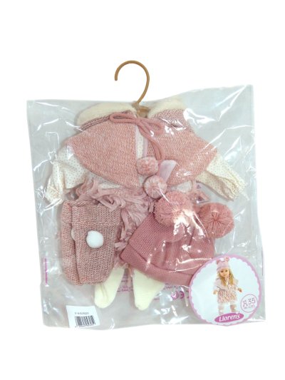 5dílný obleček pro panenku Llorens velikosti 35 cm. Vyrobeno ručně ve Španělsku, baleno v igelitovém obalu s plastovým ramínkem. Doporučený věk od 3 let.