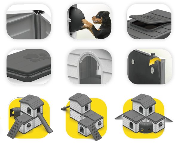 Praktický, odolný, krásný a pohodlný domeček pro psy a kočky je perfektní místo, kde může váš mazlíček spát, odpočívat nebo hrát si. Domeček je nejenom výborným útočištěm před povětrnostními podmínkami, ale díky sklopné větrací zadní stěně poslouží v horkých letních dnech i jako útočiště před sluncem.