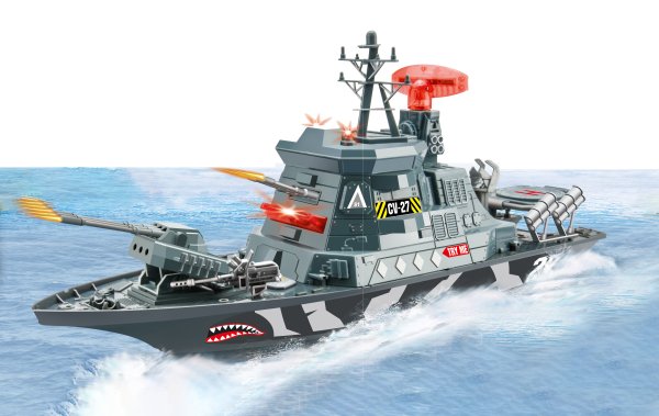Loď bitevní křižník s efekty. Velikost 59 cm. Vydává světelná a zvukové efekty, rotující radar. Aktivace efektů 4 tlačítka na straně lodi - zvuky lodí, střelby, výbuchů. 3xAA baterie nejsou součástí.