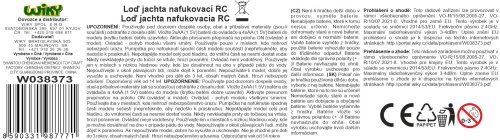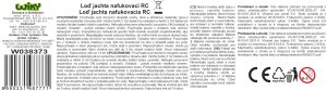 Loď jachta nafukovací RC na dálkové ovládání. Rozměry 37x20x6 cm. Frekvence 2.4GHz. Světelné efekty. 4xAA baterie do lodi, 2xAA do ovladače nejsou součástí. Tlačítko ON/OFF na lodi, přepínač ON/OFF na ovladači. Pumpa součástí.