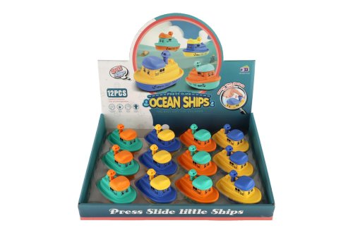 Malá, ale rychlá! Tato barevná plastová lodička s funkcí „Zmáčkni a jeď“ potěší všechny malé kapitány. Díky setrvačníku se snadno ovládá – stačí zmáčknout komín a pustit. Velikost: 5 × 10 cm Vhodné pro děti od 3 let