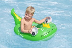 Rozměry jednotlivých modelů jsou přizpůsobeny tak, aby pohodlně pojaly malé děti. Velryba měří 105×65 cm, drak 111×65 cm a ponorka 108×65 cm. Díky těmto rozměrům a nosnosti až 45 kg jsou vhodné pro děti od tří let věku, což je také doporučený věk pro bezpečné použití. Každý model je doplněn o charakteristické detaily, které ještě více přispívají k atraktivitě – velryba je modrá s bílými spirálovitými vzory a výraznými nafukovacími očima, drak je zpracován v jasně zelené barvě s velkýma očima a žlutými detaily, zatímco ponorka je v kombinaci žluté, oranžové a tyrkysové s výrazným bílým proplétacím kolem.