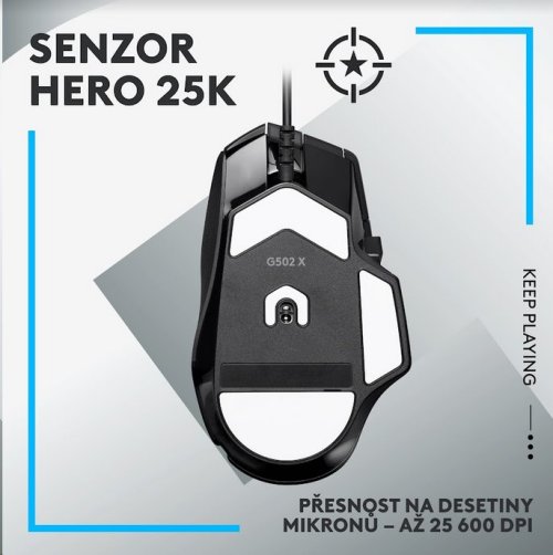 Myš G502 X LIGHTSPEED je nejnovějším přírůstkem do legendární řady produktů G502. Nově navržená a inovovaná o nejmodernější herní technologie, včetně našich historicky prvních hybridních spínačů LIGHTFORCE, profesionálního bezdrátového připojení LIGHTSPEED a senzoru HERO 25K. Myš G502 X LIGHTSPEED je navíc kompatibilní s technologií POWERPLAY – takže jí nikdy nedojde energie.