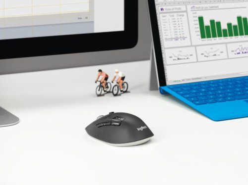 Všestranná, výkoná myš Myš Logitech M720 Triathlon díky technologii Easy-Switch se dokáže propojit až se třemi zařízeními najednou, pomocí Bluetooth.