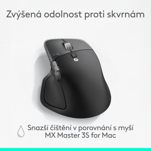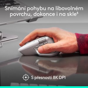 Nový Darkfield senzor s rozlišením až 8000 DPI umožňuje snímání na jakémkoli povrchu, včetně skla. Quiet Clicks technologie zajišťuje o 90 % tišší klikání s hmatovou odezvou. MagSpeed kolečko umožňuje plynulý i rychlý posuv až 1000 řádků za sekundu.