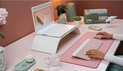 Kompaktní konstrukce sady zajistí, že budete moci pracovat i na těch nejmenších stolech a zároveň mít myš pohodlně na dosah.