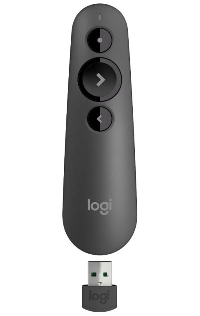 Prezentační zařízení Logitech R500s vám pomůže vyjádřit svůj názor. Intuitivní ovládací prvky prezentace vám umožňují procházet prezentací s jistotou. Tlačítka lze snadno najít po hmatu. Tvar skvěle padne do ruky. Disponuje červeným laserovým ukazovátkem, které je dobře vidět na většině pozadí, a dosahem až 20 metrů, jež vám dává možnost volně se pohybovat po místnosti a vmísit se do publika. Díky skladnému bezdrátovému přijímači s technologií Plug and Play je instalace jednoduchá. Pomocí aplikace Logitech Presentation si můžete přizpůsobit funkce tlačítek, sledovat životnost baterie a nastavit časovač na obrazovce. K počítači se připojuje pomocí USB přijímače a technologii 2,4 GHz, nebo prostřednictvím Bluetooth. Po skončení prezentace lze přijímač uložit do prezentačního zařízení, což usnadňuje přenášení.