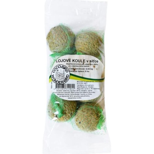 Tradiční zdroj potravy, který pomáhá mnoha ptákům přežít v chladných zimních měsících v člověkem změněné krajině. Díky vysokému obsahu tuku lojové koule dodávají ptákům energii, kterou potřebují pro udržení tělesné teploty v mrazivých dnech a celkové dobré kondice během zimního období. Lojovými koulemi lze ptáky přikrmovat celoročně, kromě velmi teplého letního období. Složení: obiloviny, lůj (min. 15 %), semena, vápník Balení: 6 ks lojových koulí.