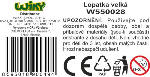 Velká lopata z plastu pro děti s držadlem - s ručkou pro snazší úchop. Rozměry dětské hračky: délka 44 cm. Různá barevná provedení: modrá, zelená, červená, žlutá.