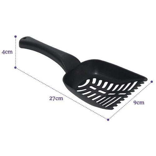 Praktická plastová lopatka k odstraňování trusu z kočičích toalet. Široký okraj lopatky umožňuje snadné vyjmutí nečistot z podestýlky. Rozměry: 28 cm