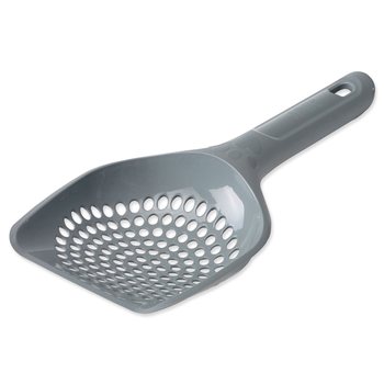 Plastová lopatka k odstraňování kočkolitu. Velikost: 11,5 x 25,5 x 4,5 cm. Různé barvy.