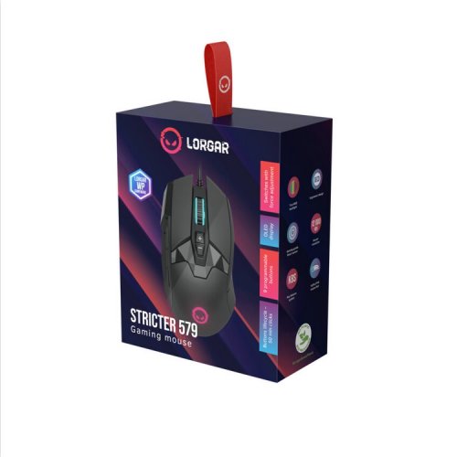 Ergonomický design v kombinaci s klasickou velikostí a hmotností minimalizuje čas potřebný k ovládání přístroje Stricter 579. Nožičky myši jsou vyrobeny z teflonu a zajišťují ten nejhladší skluz. Lehkosti pohybu dále přispívá pružný a odolný silikonový kabel.