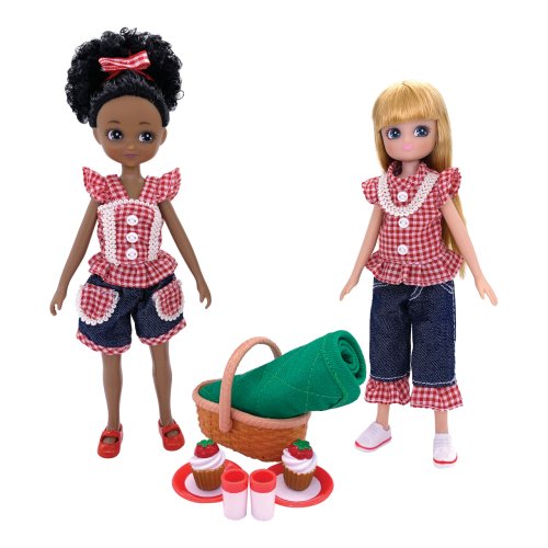 Nejlepší kamarádky, Lottie a Meghan, míří do parku na zábavný piknik. Při té příležitosti se pohodlně, zároveň ale elegantně oblékly tak, aby každý hned věděl, že patří k sobě. Usadí se pohodlně na zelené dečce a dopřejí si něco dobrého na zub, dortík a ledový čaj. Jako ostatní panenky z oceňované kolekce Lottie jsou i tyto realistické a snaží se děti naučit upřímnému pohledu na svět. Lottie jsou navrženy a zvláště uzpůsobeny malým dětským ručkám, mají pohyblivá kolena a jsou vyrobeny z prémiového měkkého vinylu a nylonu, bez použití ftalátů. Panenky jsou dodávány v atraktivní barevné kartónové taštičce s plastovým průhledem a uchem. Hlavní vlastnosti:kloubové panenky s pohyblivými koleny, perfektní pro představivou hruprémiové nylonové vlasy jsou hebké na dotek a nezamotávají sepanenky z vinylu bez obsahu ftalátů, měkké na dotekpanenky mají snímatelné boty a stojí samostatněblonďaté a černé vlasy, modré a hnědé očimilované všemi dětmi, vhodné od 3 letmalé a roztomilé panenky ve velikosti 18 cm Balení obsahuje:Lottie, veselá kamarádka, vybavená kostkovaným topem, krátkými džínovými kalhotami a bílými teniskamiMeghan, starostlivá kamarádka, vybavená kostkovaným topem, džinovými kraťasy, červenými balerínkami a stuhou ve vlasechkošík, dečka, 2 talířky, 2 dortíky a 2 šálky