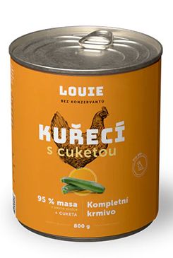 Kompletní krmivo bez obilnin pro psy každého věku i plemene, kuřecí s cuketou. Nabízí Vašemu miláčkovi možnost stravy z kvalitního masa (95 % v pevné složce). Pro podporu peristaltiky střev a simulaci minoritní rostlinné složky v potravě psů slouží příměs cukety. Krmivo neobsahuje žádné konzervanty, dochucovadla, barviva, pouze 95 % masa, 5 % cukety, vitamínů a minerálů.