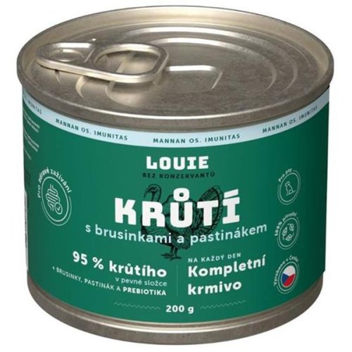 Šťavnaté kompletní krmivo v konzervě obsahuje 95 % krůtího v pevné složce. Změkčené krůtí kosti fungují jako přírodní zdroj vápníku a fosforu. Brusinky přispívají ke zdraví močových cest. Pastinák zlepšuje chuť k jídlu a podporuje peristaltiku střev. Konzerva je obohacená o prebiotika – zdraví prospěšnou rostlinnou vlákninu – ve formě mannanoligosacharidů (MOS) a fruktooligosacharidů (FOS), které posilují střevní mikroflóru. Krmivo tím přispívá k normální funkci trávicího a imunitního systému. Hlavní přednosti:
