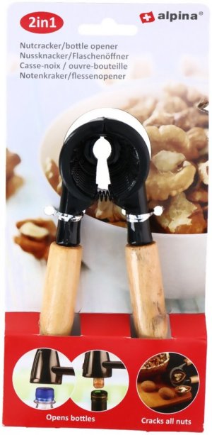 Tento louskáček ořechů z kombinace dřevo - kov umí nejen rozlousknout různě veliké ořechy, ale lze s ním snadno povolit uzávěry plastových lahví.
