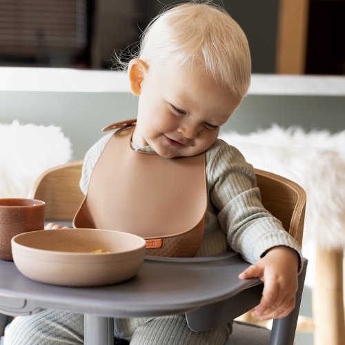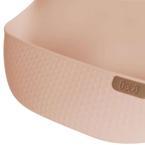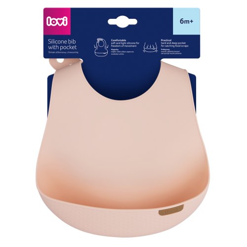LOVI Silikonový bryndáček s kapsou je velkým pomocníkem pro rodiče - chrání před nečistotami v době, kdy se dítě učí samostatně jíst. Je vyroben z lehkého, měkkého a bezpečného silikonu. Pevná a hluboká kapsa zachycuje zbytky jídla, pohodlně obepíná bříško a zasahuje doširoka do boků miminka. Nastavitelná spona a ergonomický tvar bryndáku, zejména jeho tvarované strany, zajišťují volnost pohybu. Bryndáček má originální design díky unikátní struktuře kapsy a také se snadno čistí a je vhodný do myčky.