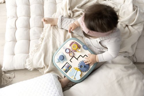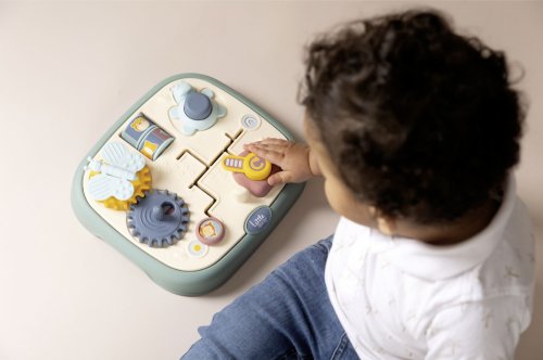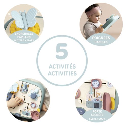Motorická deska Little Smoby s 5 různými a originálními aktivitami: labyrint, dveře se zámkem, ozubená kola, válečky a tlačítko. Rukojeti na straně poskytují dítěti pevný úchop. Slouží k rozvíjení motorických schopností dítěte. Rozměry výrobku (DxŠxV): 23,4 x 25,1 x 6,7 cm.