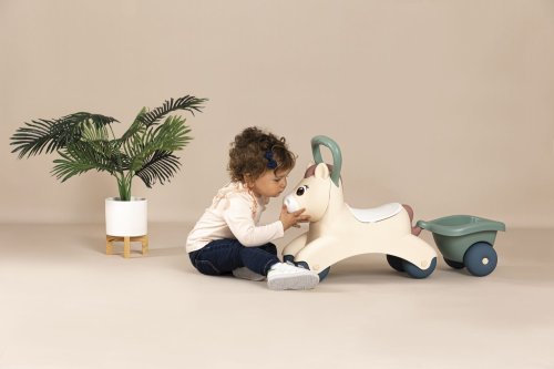 Ergonomické dětské odrážedlo Little Smoby v roztomilém designu poníka. Lehký a obratný. S ergonomickým řízením a rukojetí. Rodičům slouží ergonomická rukojeť i jako praktické madlo na přenášení. Součástí je také kompaktní přívěs. Díky nízké hmotnosti a rozměrům je baby pony lehký a ovladatelný, díky čemuž je ideálním dětským dopravním prostředkem pro děti od 12 měsíců. Rozměry produktu (DxŠxV): 70 x 23 x 43 cm.