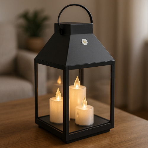 Tato lucerna nabízí elegantní vzhled a pohodlné LED osvětlení s časovačem pro dlouhotrvající dekorativní efekt.