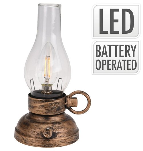 dekorativní RETRO lucerna s LED osvětlením- LED žárovka s dlouhou životností (teplá bílá)- intenzitu svícení můžete jednoduše měnit ovládacím knoflíkem- kovové provedení se skleněným tělem- spodní základna je pevná a stojí stabilně- vhodné do zahrady, na chatu, terasu, balkon i do interiéru- lucerna je vhodná k postavení- velmi praktické svítidlo, nepotřebuje elektrickou přípojku- napájení: 2x AAA baterie (není součástí balení)- rozměry: 13,5 x 10,5 x 20,5 cm