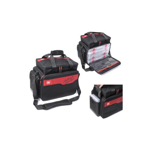Hlavní a horní kapsa jsou uzavřeny dvojitými zipy pro snadný přístup a zabezpečení obsahu. Dvě boční kapsy s klopami na suchý zip poskytují další úložný prostor pro drobnosti. Na zadní stěně se nachází velká síťovaná kapsa, ideální pro uložení vlhké výstroje nebo nástrah. Horní přihrádka na příslušenství je vybavena měkkou přepážkou pro ochranu citlivých předmětů. Boční stěna a měkký horní kryt disponují průhlednými kapsami se zapínáním na suchý zip, což usnadňuje organizaci a přehlednost. V hlavní komoře jsou umístěny 3 boxy o rozměrech 36 x 23 x 5 cm a jeden box o rozměrech 36 x 23 x 8 cm, které poskytují dostatek úložného prostoru pro nástrahy, návnady a další vybavení. V postranních kapsách jsou umístěny 2 boxy o rozměrech 21 x 14 x 4 cm. Pro pohodlné nošení je taška vybavena odnímatelným, délkově nastavitelným popruhem a dvěma měkkými držadly. Vodotěsné dno tašky chrání obsah před vlhkostí a znečištěním.