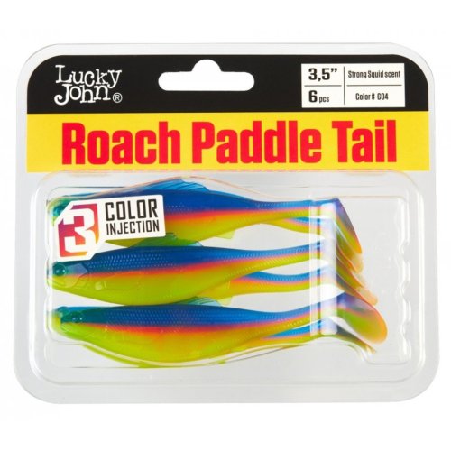 Lucky John Roach Paddle Tail je realistická nástraha s příchutí chobotnice, navržená tak, aby imitovala tvar a pohyb malé rybky. Tělo ve tvaru nástražní rybky je doplněno realistickými detaily, včetně tvarovaného vzoru šupin, ploutví a očí, což zvyšuje její atraktivitu pro dravé ryby. Měkká nástraha Lucky John Pro Series ROACH PADDLE TAIL byla vytvořena pomocí nové technologie, která umožňuje kombinovat kontrastní barvy bez ztráty jasu. Jedná se o první trojbarevný nástřik a zcela novou barevnou kombinaci speciálně vyvinutou pro sladkovodní dravé ryby. K dostání ve velikosti 3,5 palce (cca 8,9 cm) a hmotnosti 6,4 gramů. Balení obsahuje 6 kusů.