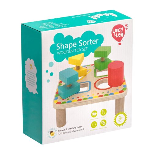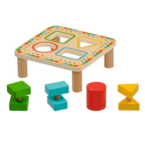 Třídění geometrických tvarů není jen běžná dřevěná vkládačka, která učí děti poznávat základní geometrické tvary a barvy. Hra má totiž tři důmyslné dvoudílné vkládací prvky. Dítě tedy bude muset nejprve tyto prvky roztřídit a přiřadit k odpovídajícím otvorům a následně najít způsob, jak je skrz vybrané otvory prostrčit. Dvoudílné prvky je totiž třeba při průchodu deskou po prvním vsunutí správně pootočit, aby prošel skrz otvor celý vkládací prvek. Tato činnost bude vyžadovat u dětí více logického myšlení a kombinace těchto úkolů je pro děti větší výzvou a je skvělá na podporu motorické zručnosti a trpělivosti. Hra obsahuje dřevěnou desku na nožičkách se 4 barevně orámovanými otvory, 3 dvoudílné vkládací prvky se základními geometrickými tvary a jeden válec. Prvky jsou ve 4 barvách, které korespondují s rámečky na vkládací desce. Rozměry desky: délka 16 cm, šířka 16 cm, výška 6 cm. Rozměry tvarů cca 4,5 cm x 4 cm.