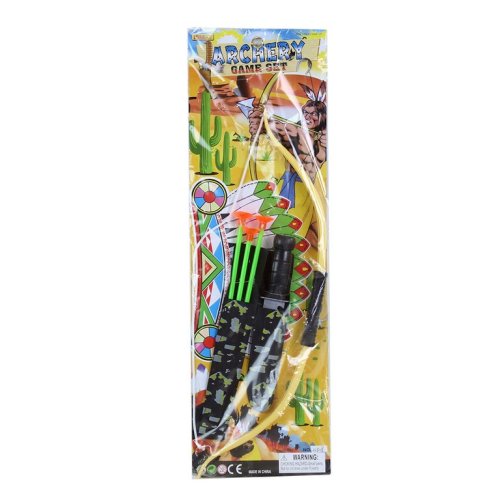 Natáhni, zamiř a střílej! Tato lovecká sada obsahuje úchvatný luk, 3 barevné šípy s přísavkami v obalu a nůž. Vše je vyrobeno z plastu. Tětivu je nutné zkrátit tak, aby byla dostatečně napnutá.