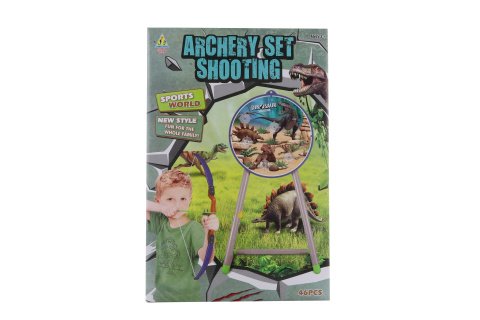 Plastová sada luku se šípy. V balení kulatý plastový terč s obrázky dinosaurů. Rozměry balení cca 48x32x5 cm. Věk 3+