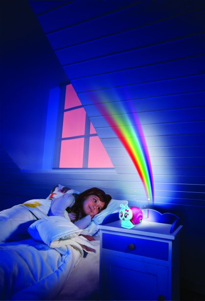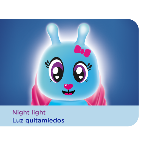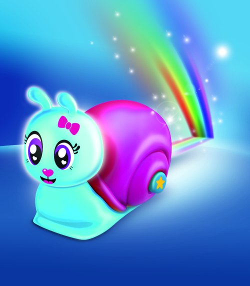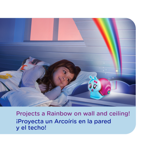 Šnek Lumiluvs po fouknutí na bříško a pusinku svítí. Zmáčkni šnekovi tlačítko na ulitě a na zdi a stropě se objeví duha. Výrobek vyžaduje 3× AAA baterie, které jsou součástí balení. Vhodné pro děti od 18 měsíců.