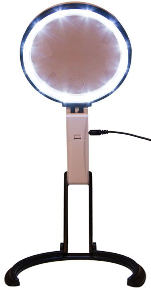 na ruční lupu. 12 LED světel zabudovaných do hrany lupy ze