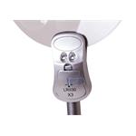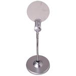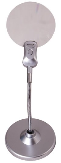 stabilní základna ve stříbrné barvě. Osvětlení ve spodní straně lupy