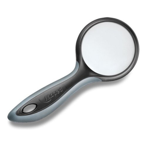 Lupa se zvětšovacím faktorem 3. Nedeformující tónované sklo. průměr 50 mm.