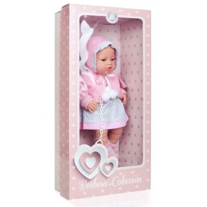 Luxusní španělská dětská panenka-miminko Berbesa Amanda. Panenka má vinylové tělíčko, ručičky i nožičky. Amanda má milou tvářičku, která vypadá jako opravdové miminko. Faldíky na ručičkách, nožičkách a bříšku ještě více připomínají novorozence. Panenka má krásná modrá kukadla, růžové rtíky, ručičky a nožičky jsou pohyblivé v kloubech. Součástí je roztomilý pletený svetřík, pletená čepička s volánkem, šatičky, kalhotky a ponožky. Obleček se dá sundat. Panenka má dudlíček na řetízku. Tělíčko miminka má jemnou vůni po vanilce. Délka panenky je cca 43 cm. Vhodné pro děti od 3 let. Při výrobě jsou používány výhradně kvalitní materiály.